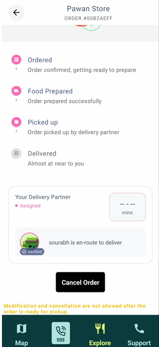 ○ Delivery status updates: Accepted → Picked Up → Delivered.